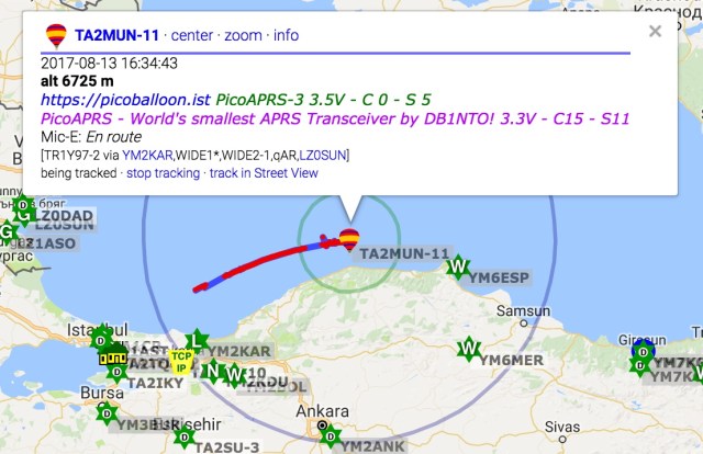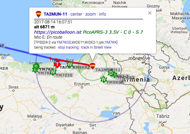 Bu arada balonumuzun şu anki rotası Gürcistan’a doğru. Dolayısıyla yarın sabah Artvin açıklarında ilk sinyali almayı umuyoruz.